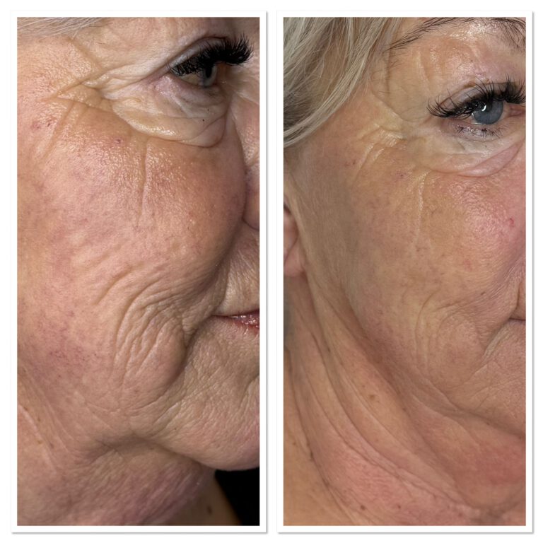 - Versteviging en vermindering van lijntjes: Fijne lijntjes worden zachter en de huid voelt steviger aan.
